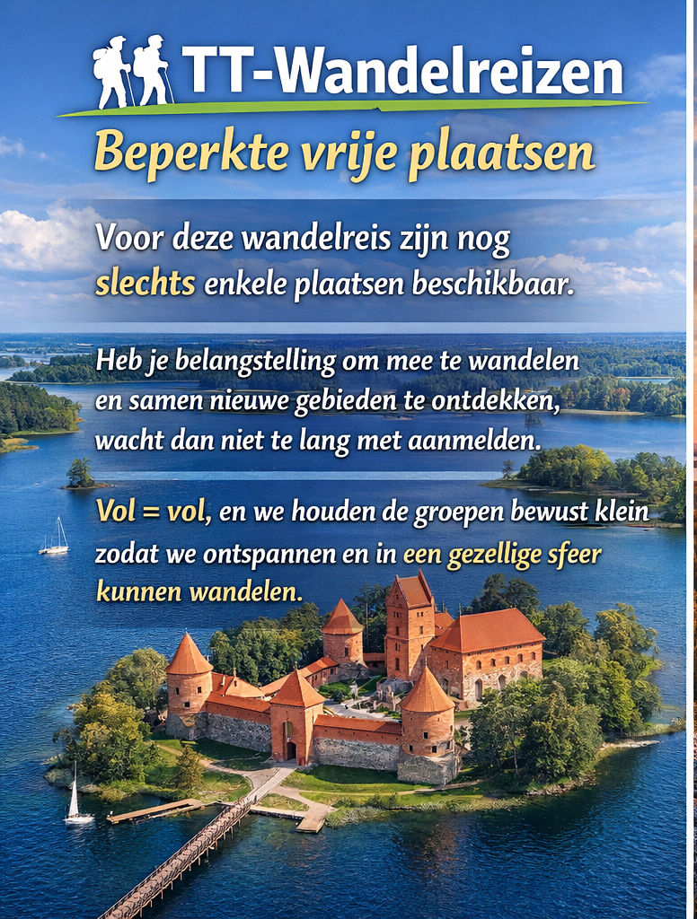 | 26 juli t/m 5 augustus 2026 | Wandelreis Litouwen | € 1890,-* | € 435 - |